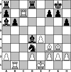 Partie-Notation im PGN-Format [Event "Trotz Sturm und Regen die Figuren bewegen II"] [Site "www.mySchach.de"] [Date "2025.08.15"] [Round "1"] [White "kalle"] [Black "Leon"] [ECO "D55"] [WhitemyELO "1623"] [BlackmyELO "2086"] [Result "0-1"] [TimeControl "10/2592000"] [WhiteDays "79"] [BlackDays "88"] [MySchachNr "133602"] 1. d4 d5 2. c4 e6 3. Nc3 Nf6 4. Bg5 Be7 5. e3 O-O 6. Nf3 h6 7. Bf4 c5 8. cxd5 Nxd5 9. Nxd5 Qxd5 10. Be2 cxd4 11. Qxd4 Qa5+ 12. Kf1 Rd8 13. Qc3 Qxc3 14. bxc3 Na6 15. Nd4 Bf6 16. Bf3 e5 17. Bg3 exd4 18. cxd4 Nb4 19. Ke2 Nd5 20. Rhc1 b6 21. e4 Ba6+ 22. Ke1 Nb4 23. Rc7 Bxd4 24. Rb1 Nd3+ 0-1 Stellungs-Notation im FEN-Format r2r2k1/p1R2pp1/bp5p/8/3bP3/3n1BB1/P2P1PPP/1R2K3 - - - 2 25 Geschlagene Figuren Weiss: Geschlagene Figuren Schwarz: Klicken Sie auf eine geschlagene Figur um den gewünschten Zug darzustellen!