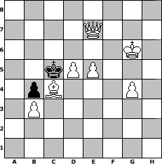 Partie-Notation im PGN-Format [Event "4. Wikingermeisterschaft"] [Site "www.mySchach.de"] [Date "2008.04.07"] [Round "1"] [White "73DADDELDU37"] [Black "Steppenwolf"] [ECO "A02"] [WhitemyELO "1464"] [BlackmyELO "1435"] [Result "1-0"] [TimeControl "10/2592000"] [WhiteDays "30"] [BlackDays "30"] [MySchachNr "44201"] 1. f4 f5 2. d3 d5 3. Bd2 Nf6 4. Nf3 Nc6 5. e3 e6 6. Ne5 Nxe5 7. fxe5 Nd7 8. d4 Nb6 9. Qh5+ g6 10. Qf3 Qe7 11. a3 Bg7 12. Bb4 Qf7 13. Ba5 O-O 14. b3 Bd7 15. Bd3 a6 16. a4 Bc6 17. Bxb6 cxb6 18. O-O b5 19. axb5 axb5 20. Nc3 Rxa1 21. Rxa1 b6 22. Nxb5 Bxb5 23. Bxb5 Qb7 24. Qe2 Ra8 25. Rxa8+ Qxa8 26. Ba6 f4 27. exf4 h6 28. Qb5 Qa7 29. c4 g5 30. fxg5 hxg5 31. cxd5 exd5 32. Qxd5+ Kf8 33. Qb7 Qxb7 34. Bxb7 b5 35. Kf2 b4 36. Kf3 Kf7 37. Bd5+ Ke7 38. Kg4 Bh6 39. Kh5 Bg7 40. Kxg5 Bf8 41. Bc4 Bg7 42. g4 Ke8 43. Kg6 Bf8 44. h4 Ke7 45. h5 Ke8 46. h6 Kd7 47. h7 Kc6 48. h8=Q Be7 49. Qe8+ Kb6 50. d5 Kc5 51. Qxe7+ 1-0 Stellungs-Notation im FEN-Format 8/4Q3/6K1/2kPP3/1pB3P1/1P6/8/8 - - - 0 51 Geschlagene Figuren Weiss: Geschlagene Figuren Schwarz: Klicken Sie auf eine geschlagene Figur um den gewünschten Zug darzustellen!