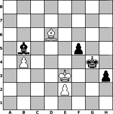 Partie-Notation im PGN-Format [Event "und immer wieder Schach !"] [Site "www.mySchach.de"] [Date "2009.11.06"] [Round "1"] [White "Andreas"] [Black "Naunhofer"] [ECO "B55"] [WhitemyELO "1519"] [BlackmyELO "1590"] [Result "1/2-1/2"] [TimeControl "10/864000"] [WhiteDays "42"] [BlackDays "50"] [MySchachNr "60423"] 1. e4 c5 2. Nf3 d6 3. d4 cxd4 4. Nxd4 Nf6 5. Bd3 e6 6. O-O Be7 7. Kh1 O-O 8. Nc3 a6 9. f4 b5 10. Be3 Bb7 11. h3 Nbd7 12. b4 Qc7 13. Qe1 Rac8 14. Bd2 Rfe8 15. Rf3 h6 16. Rg3 Kh8 17. a4 bxa4 18. Rxa4 Nb6 19. Ra3 Nc4 20. Bxc4 Qxc4 21. Rd3 e5 22. Nf5 Nxe4 23. Nxe4 Qxe4 24. Qxe4 Bxe4 25. Nxd6 Bxd6 26. Rxd6 Rxc2 27. fxe5 Rxe5 28. Rg3 Re6 29. Rd8+ Kh7 30. Bc3 Bxg2+ 31. Kg1 Rg6 32. Rxg6 Kxg6 33. Rd6+ f6 34. Rxa6 Bxh3 35. Bd4 Bf5 36. Ra7 h5 37. Bc5 h4 38. Bf8 h3 39. Rxg7+ Kh5 40. Bd6 Be4 41. Rg8 Rg2+ 42. Rxg2 Bxg2 43. Kf2 Kg4 44. Ke3 Bc6 45. Kf2 f5 46. Ke3 Bb5 1/2-1/2 Stellungs-Notation im FEN-Format 8/8/3B4/1b3p2/1P4k1/4K2p/4P3/8 - - - 2 47 Geschlagene Figuren Weiss: Geschlagene Figuren Schwarz: Klicken Sie auf eine geschlagene Figur um den gewünschten Zug darzustellen!