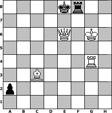 Partie-Notation im PGN-Format [Event "Adventszeit"] [Site "www.mySchach.de"] [Date "2022.11.28"] [Round "1"] [White "Haneken"] [Black "Lohl"] [ECO "C45"] [WhitemyELO "1167"] [BlackmyELO "1333"] [Result "1-0"] [TimeControl "10/1728000"] [WhiteDays "20"] [BlackDays "20"] [MySchachNr "128275"] 1. e4 e5 2. Nf3 Nc6 3. d4 exd4 4. Nxd4 Bc5 5. c3 Qf6 6. Be3 Nge7 7. Bc4 Ne5 8. Be2 d5 9. f3 b6 10. Bb5+ Bd7 11. f4 N5g6 12. Qa4 Bxd4 13. cxd4 c6 14. Be2 c5 15. Bb5 Bxb5 16. Qxb5+ Qc6 17. Qxc6+ Nxc6 18. exd5 Nb4 19. Kd2 O-O 20. a3 cxd4 21. Bxd4 Nxf4 22. axb4 Nxd5 23. b5 Nf4 24. g3 Ne6 25. Be5 Rfd8+ 26. Kc2 Rac8+ 27. Nc3 Rd5 28. Rhe1 f6 29. Bb8 Nd4+ 30. Kd3 Rd7 31. Bf4 Nxb5+ 32. Ke3 Re8+ 33. Kf3 Nd4+ 34. Kf2 Rxe1 35. Rxe1 Nc2 36. Re8+ Kf7 37. Re2 Nd4 38. Rd2 g5 39. Be3 Ke6 40. Bxd4 g4 41. Ke3 f5 42. Re2 h6 43. Kf4+ Kd6 44. Kxf5 h5 45. Nb5+ Kc6 46. Re5 a6 47. Na7+ Rxa7 48. Kf4 Rd7 49. Bc3 Rd1 50. Rxh5 Rd7 51. Kxg4 b5 52. b4 Rd3 53. Be5 Rb3 54. Rh6+ Kd5 55. Kf5 Rxb4 56. Rd6+ Kc5 57. h4 Rb1 58. g4 a5 59. Ke6 Rb4 60. Rd5+ Kc6 61. g5 Rxh4 62. g6 Rg4 63. g7 a4 64. Bd4 b4 65. Rc5+ Kb7 66. Rb5+ Kc8 67. Rxb4 a3 68. Bc3 Rg3 69. Rc4+ Kd8 70. Kf7 a2 71. Ke6 Rg6+ 72. Kf5 Rg1 73. Rg4 Rf1+ 74. Kg6 Ke8 75. g8=Q+ Rf8 76. Qe6+ 1-0 Stellungs-Notation im FEN-Format 4kr2/8/4Q1K1/8/6R1/2B5/p7/8 - - - 2 76 Geschlagene Figuren Weiss: Geschlagene Figuren Schwarz: Klicken Sie auf eine geschlagene Figur um den gewünschten Zug darzustellen!