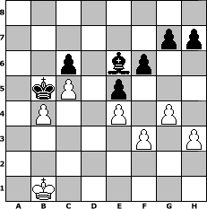 Partie-Notation im PGN-Format [Event "Relax 2009"] [Site "www.mySchach.de"] [Date "2009.05.20"] [Round "1"] [White "Joschi"] [Black "muetoe"] [ECO "B41"] [WhitemyELO "1564"] [BlackmyELO "1945"] [Result "0-1"] [TimeControl "10/3456000"] [WhiteDays "193"] [BlackDays "175"] [MySchachNr "55888"] 1. e4 c5 2. Nf3 e6 3. d4 cxd4 4. Nxd4 a6 5. Be2 b5 6. O-O Nc6 7. Nxc6 dxc6 8. Bf4 Bb7 9. Bf3 Ne7 10. Nc3 Ng6 11. Bg3 Qg5 12. Qe2 Ne5 13. Rfd1 Bc5 14. a3 O-O 15. b4 Bb6 16. Rd6 Rad8 17. Rad1 Rxd6 18. Rxd6 Qc1+ 19. Rd1 Nxf3+ 20. Qxf3 Qxa3 21. h3 f6 22. Bd6 Rf7 23. Rd3 Qc1+ 24. Qd1 Qxd1+ 25. Rxd1 e5 26. Kf1 Rd7 27. Ke2 Kf7 28. f3 Rd8 29. g4 Ke6 30. Bc5 Rxd1 31. Nxd1 Bxc5 32. bxc5 a5 33. Kd3 Bc8 34. Kc3 Ke7 35. Ne3 Be6 36. Ng2 b4+ 37. Kb2 a4 38. Ne3 a3+ 39. Ka1 Kd8 40. Nf1 Kc7 41. Nd2 Kb7 42. Nb1 Ka6 43. c3 a2 44. cxb4 axb1=Q+ 45. Kxb1 Kb5 0-1 Stellungs-Notation im FEN-Format 8/6pp/2p1bp2/1kP1p3/1P2P1P1/5P1P/8/1K6 - - - 1 46 Geschlagene Figuren Weiss: Geschlagene Figuren Schwarz: Klicken Sie auf eine geschlagene Figur um den gewünschten Zug darzustellen!
