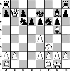 Partie-Notation im PGN-Format [Event "Wrixum - Open die VII"] [Site "www.mySchach.de"] [Date "2010.06.05"] [Round "1"] [White "martinus"] [Black "Knight"] [ECO "C21"] [WhitemyELO "1760"] [BlackmyELO "1179"] [Result "1-0"] [TimeControl "10/2592000"] [WhiteDays "30"] [BlackDays "30"] [MySchachNr "66134"] 1. e4 e5 2. d4 exd4 3. c3 dxc3 4. Nxc3 Nc6 5. Bc4 Nf6 6. Qb3 Qe7 7. Nf3 d6 8. O-O g6 9. Bg5 Bg7 10. Nd5 Be6 11. Nxe7 Kxe7 12. Bxe6 fxe6 13. Qxb7 1-0 Stellungs-Notation im FEN-Format r6r/pQp1k1bp/2nppnp1/6B1/4P3/5N2/PP2PPPP/R4RK1 - - - 0 13 Geschlagene Figuren Weiss: Geschlagene Figuren Schwarz: Klicken Sie auf eine geschlagene Figur um den gewünschten Zug darzustellen!