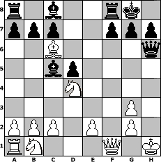 | Partie-Notation im PGN-Format [Event "Winterturnier"] [Site "www.mySchach.de"] [Date "2009.11.12"] [Round "1"] [White "muellerh"] [Black "gambito"] [ECO "C55"] [WhitemyELO "1480"] [BlackmyELO "1530"] [Result "0-1"] [TimeControl "10/3456000"] [WhiteDays "34"] [BlackDays "36"] [MySchachNr "60604"] 1. e4 e5 2. Nf3 Nc6 3. Bc4 Nf6 4. O-O Nxe4 5. Re1 d5 6. Bb5 Bc5 7. d4 exd4 8. Nxd4 O-O 9. Bxc6 Nxf2 10. Qd2 Ne4 11. Qd3 Qh4 12. Be3 Qxe1+ 13. Qf1 Qxe3+ 14. Kh1 Ng3+ 15. hxg3 Qh6+ 0-1 Stellungs-Notation im FEN-Format r1b2rk1/ppp2ppp/2B4q/2bp4/3N4/6P1/PPP1P1P1/RN3Q1K - - - 1 16 Geschlagene Figuren Weiss:                              Geschlagene Figuren Schwarz:                               Klicken Sie auf eine geschlagene Figur um den gewünschten Zug darzustellen!