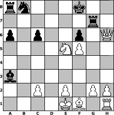 Partie-Notation im PGN-Format [Event "Februar-Open (5)"] [Site "www.mySchach.de"] [Date "2009.01.18"] [Round "1"] [White "PeterLoskarn"] [Black "neve"] [ECO "B96"] [WhitemyELO "2095"] [BlackmyELO "1530"] [Result "1-0"] [TimeControl "10/1728000"] [WhiteDays "20"] [BlackDays "20"] [MySchachNr "51853"] 1. e4 c5 2. Nf3 d6 3. d4 cxd4 4. Nxd4 Nf6 5. Nc3 a6 6. Bg5 e6 7. f4 h6 8. Bh4 Qb6 9. a3 Bd7 10. Bxf6 Qxb2 11. Nb3 gxf6 12. Qd2 Bc6 13. Ra2 Qxa2 14. Nxa2 Bxe4 15. Nc3 Bc6 16. Nd4 Rg8 17. f5 e5 18. Nxc6 bxc6 19. Ne4 Be7 20. Nxd6+ Kf8 21. Qxh6+ Rg7 22. Nxf7 Bxa3 23. Nxe5 1-0 Stellungs-Notation im FEN-Format rn3k2/6r1/p1p2p1Q/4NP2/8/b7/2P1P1PP/4KB1R - K - 0 23 Geschlagene Figuren Weiss: Geschlagene Figuren Schwarz: Klicken Sie auf eine geschlagene Figur um den gewünschten Zug darzustellen!