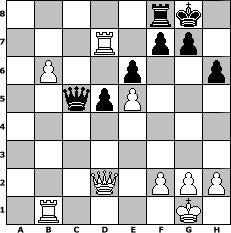 Partie-Notation im PGN-Format [Event "Albspiele II"] [Site "www.mySchach.de"] [Date "2010.01.10"] [Round "1"] [White "paul"] [Black "Haki"] [ECO "C00"] [WhitemyELO "1300"] [BlackmyELO "1374"] [Result "1-0"] [TimeControl "10/2592000"] [WhiteDays "24"] [BlackDays "30"] [MySchachNr "62283"] 1. e4 e6 2. e5 d5 3. d4 c5 4. Nf3 Nc6 5. Bb5 Bd7 6. Bg5 Be7 7. Bxc6 Bxc6 8. Bxe7 Qxe7 9. Nc3 Nh6 10. O-O Nf5 11. Qd2 O-O 12. dxc5 Qxc5 13. Ne4 Qb6 14. Nc3 Rad8 15. Rad1 Qxb2 16. Nd4 Nxd4 17. Rc1 Ne2+ 18. Nxe2 Qxa2 19. Nd4 Bd7 20. Ra1 Qc4 21. Rxa7 b5 22. Rb1 Qc5 23. c3 Ra8 24. Rxd7 Ra3 25. Nxb5 Ra5 26. c4 Rxb5 27. cxb5 h6 28. b6 1-0 Stellungs-Notation im FEN-Format 5rk1/3R1pp1/1P2p2p/2qpP3/8/8/3Q1PPP/1R4K1 - - - 0 28 Geschlagene Figuren Weiss: Geschlagene Figuren Schwarz: Klicken Sie auf eine geschlagene Figur um den gewünschten Zug darzustellen!