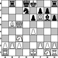 Partie-Notation im PGN-Format [Event "°°°°``Der sch"] [Site "www.mySchach.de"] [Date "2009.05.11"] [Round "1"] [White "rux"] [Black "Andylein1989"] [ECO "A10"] [WhitemyELO "1452"] [BlackmyELO "1587"] [Result "1-0"] [TimeControl "10/864000"] [WhiteDays "20"] [BlackDays "18"] [MySchachNr "55604"] 1. c4 d5 2. cxd5 Qxd5 3. Nc3 Qd8 4. d4 Bf5 5. e4 Bg6 6. d5 c6 7. Qb3 cxd5 8. Bb5+ Nd7 9. Qxd5 Ngf6 10. Qxb7 Rb8 11. Qxa7 e6 12. Bg5 Bc5 13. Qxc5 h6 14. Bxf6 1-0 Stellungs-Notation im FEN-Format 1r1qk2r/3n1pp1/4pBbp/1BQ5/4P3/2N5/PPP2PPP/R3K1NR - KQk - 0 14 Geschlagene Figuren Weiss: Geschlagene Figuren Schwarz: Klicken Sie auf eine geschlagene Figur um den gewünschten Zug darzustellen!