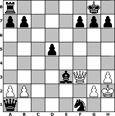 Partie-Notation im PGN-Format [Event "Die Wikinger XXI. - Qualifikation"] [Site "www.mySchach.de"] [Date "2025.08.08"] [Round "1"] [White "Master1"] [Black "jeremyt"] [ECO "D00"] [WhitemyELO "1376"] [BlackmyELO "2104"] [Result "0-1"] [TimeControl "10/2592000"] [WhiteDays "18"] [BlackDays "28"] [MySchachNr "133578"] 1. d4 d5 2. e3 Nf6 3. Bd3 c5 4. c3 Nc6 5. Nf3 Bg4 6. Nbd2 e6 7. O-O Bd6 8. Re1 O-O 9. e4 cxd4 10. c4 Ne5 11. cxd5 Nxd3 12. Re2 exd5 13. e5 Nxe5 14. Nxe5 Bxe5 15. f3 Re8 16. fxg4 d3 17. Re1 Bd4+ 18. Kh1 Nxg4 19. Rxe8+ Qxe8 20. Qf3 Qe1+ 21. Nf1 Nf2+ 22. Kg1 Ne4+ 23. Kh1 d2 24. Bxd2 Qxa1 25. Be3 Bxe3 26. h3 Ng3+ 27. Kh2 Nxf1+ 0-1 Stellungs-Notation im FEN-Format r5k1/pp3ppp/8/3p4/8/4bQ1P/PP4PK/q4n2 - - - 0 28 Geschlagene Figuren Weiss: Geschlagene Figuren Schwarz: Klicken Sie auf eine geschlagene Figur um den gewünschten Zug darzustellen!