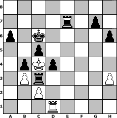 Partie-Notation im PGN-Format [Event "Albspiele 17"] [Site "www.mySchach.de"] [Date "2011.12.02"] [Round "1"] [White "Wulfen49"] [Black "Caligula"] [ECO "C42"] [WhitemyELO "1310"] [BlackmyELO "1362"] [Result "0-1"] [TimeControl "10/864000"] [WhiteDays "42"] [BlackDays "50"] [MySchachNr "77886"] 1. e4 e5 2. Nf3 Nf6 3. Nc3 d6 4. d4 exd4 5. Nxd4 c5 6. Nf3 Nc6 7. Be2 Be6 8. O-O a6 9. Bg5 Be7 10. b3 h6 11. e5 Nxe5 12. Bh4 Nxf3+ 13. Bxf3 Rb8 14. Re1 b5 15. Bxf6 Bxf6 16. Bc6+ Ke7 17. Bd5 Bxc3 18. Bxe6 Bxe1 19. Qxe1 fxe6 20. Rd1 Rf8 21. f3 Rf6 22. Qh4 Qf8 23. Rf1 Kd7 24. Qe1 Re8 25. a4 b4 26. Qe2 e5 27. Qe4 Kc7 28. Qe2 Kb6 29. a5+ Ka7 30. Qe4 Ree6 31. Qc6 Qb8 32. Qd7+ Qb7 33. Qd8 Re7 34. Rd1 Rd7 35. Qb6+ Qxb6 36. axb6+ Kxb6 37. Kf2 d5 38. h3 e4 39. Ke3 exf3 40. gxf3 d4+ 41. Ke4 Re6+ 42. Kf5 Rf6+ 43. Ke5 Kc6 44. Ke4 Re7+ 45. Kd3 Rxf3+ 46. Kc4 Rc3# 0-1 Stellungs-Notation im FEN-Format 8/4r1p1/p1k4p/2p5/1pKp4/1Pr4P/2P5/3R4 - - - 2 47 Geschlagene Figuren Weiss: Geschlagene Figuren Schwarz: Klicken Sie auf eine geschlagene Figur um den gewünschten Zug darzustellen!