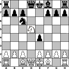 Partie-Notation im PGN-Format [Event "Svetlana Open 2012"] [Site "www.mySchach.de"] [Date "2012.03.22"] [Round "1"] [White "woern63"] [Black "alibengali"] [ECO "C42"] [WhitemyELO "1898"] [BlackmyELO "1619"] [Result "1-0"] [TimeControl "10/2592000"] [WhiteDays "30"] [BlackDays "00"] [MySchachNr "80769"] 1. e4 e5 2. Nf3 Nf6 3. Nxe5 d6 4. Nc4 Nxe4 5. d4 d5 6. Ne3 Be6 7. Nd2 Nc6 8. Nxe4 dxe4 9. d5 Bxd5 10. Nxd5 1-0 Stellungs-Notation im FEN-Format r2qkb1r/ppp2ppp/2n5/3N4/4p3/8/PPP1PPPP/R1BQKB1R - KQkq - 0 10 Geschlagene Figuren Weiss: ![]() ![]() ![]() ![]() ![]() ![]() ![]() ![]() ![]() ![]() ![]() ![]() ![]() ![]() ![]() Geschlagene Figuren Schwarz: ![]() ![]() ![]() ![]() ![]() ![]() ![]() ![]() ![]() ![]() ![]() ![]() ![]() ![]() ![]() Klicken Sie auf eine geschlagene Figur um den gewünschten Zug darzustellen!