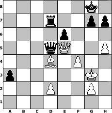 Partie-Notation im PGN-Format [Event "Für die kalten Tage..."] [Site "www.mySchach.de"] [Date "2018.02.09"] [Round "1"] [White "FrankB"] [Black "sprinterde"] [ECO "D02"] [WhitemyELO "1706"] [BlackmyELO "1703"] [Result "0-1"] [TimeControl "10/1728000"] [WhiteDays "16"] [BlackDays "20"] [MySchachNr "111349"] 1. d4 d5 2. Nf3 Nc6 3. e3 Nf6 4. c4 e6 5. a3 Be7 6. Nc3 O-O 7. Bd3 Bd6 8. O-O dxc4 9. Bxc4 b6 10. b4 a6 11. Bb2 Bb7 12. Rc1 Ne7 13. Be2 Qb8 14. h3 Rd8 15. Qc2 a5 16. b5 c6 17. a4 Rc8 18. Qb3 c5 19. Rfd1 cxd4 20. Nxd4 Bh2+ 21. Kf1 Be5 22. Bf3 Bxd4 23. Bxb7 Qxb7 24. Rxd4 Nfd5 25. Nxd5 Nxd5 26. Rxc8+ Rxc8 27. Rc4 f6 28. Bd4 Rc7 29. Qc2 Rd7 30. e4 Nb4 31. Qe2 Rc7 32. f3 Rd7 33. Qe3 Rd6 34. Qc3 Rd7 35. Rc6 Nxc6 36. bxc6 Qa6+ 37. Kf2 Rc7 38. f4 b5 39. Qc5 bxa4 40. e5 Qxc6 41. Qxa5 Qc2+ 42. Kf3 fxe5 43. Qxe5 Qc6+ 44. Kg3 a3 45. h4 Rd7 46. h5 Qd5 0-1 Stellungs-Notation im FEN-Format 6k1/3r2pp/4p3/3qQ2P/3B1P2/p5K1/3P2P1/8 - - - 1 47 Geschlagene Figuren Weiss: Geschlagene Figuren Schwarz: Klicken Sie auf eine geschlagene Figur um den gewünschten Zug darzustellen!