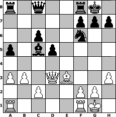 Partie-Notation im PGN-Format [Event "Mal wieder spielen 2"] [Site "www.mySchach.de"] [Date "2013.05.12"] [Round "1"] [White "Ziegert"] [Black "Naunhofer"] [ECO "B32"] [WhitemyELO "1571"] [BlackmyELO "1689"] [Result "0-1"] [TimeControl "10/1728000"] [WhiteDays "00"] [BlackDays "34"] [MySchachNr "88291"] 1. e4 c5 2. Nf3 Nc6 3. d4 cxd4 4. Nxd4 e6 5. Nc3 a6 6. Be3 Nf6 7. a3 Be7 8. Be2 O-O 9. O-O d5 10. Nxc6 bxc6 11. exd5 exd5 12. h3 a5 13. Na4 Ba6 14. Bxa6 Rxa6 15. Nc5 Ra8 16. Qd3 Rb8 17. b3 Qc8 18. Na6 Ra8 19. Nc5 Bxc5 0-1 Stellungs-Notation im FEN-Format r1q2rk1/5ppp/2p2n2/p1bp4/8/PP1QB2P/2P2PP1/R4RK1 - - - 0 20 Geschlagene Figuren Weiss: Geschlagene Figuren Schwarz: Klicken Sie auf eine geschlagene Figur um den gewünschten Zug darzustellen!
