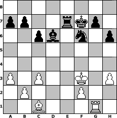 Partie-Notation im PGN-Format [Event "Mal wieder spielen 2"] [Site "www.mySchach.de"] [Date "2013.05.12"] [Round "1"] [White "Ziegert"] [Black "Tomino"] [ECO "B17"] [WhitemyELO "1571"] [BlackmyELO "1690"] [Result "0-1"] [TimeControl "10/1728000"] [WhiteDays "00"] [BlackDays "39"] [MySchachNr "88247"] 1. e4 c6 2. d4 d5 3. Nc3 dxe4 4. Nxe4 Nd7 5. Bc4 Ngf6 6. Ng5 e6 7. Qe2 Nb6 8. Bb3 h6 9. Ne4 Qxd4 10. Nxf6+ Qxf6 11. Nf3 Bd6 12. O-O O-O 13. c3 e5 14. Bd2 Re8 15. Rae1 Bg4 16. Bd1 e4 17. Bc2 exf3 18. Qd3 Qg6 19. Rxe8+ Rxe8 20. Qxg6 fxg6 21. Bxg6 Re2 22. Bc1 Nd5 23. Bd3 Re7 24. h3 fxg2 25. Kxg2 Be2 26. Bxe2 Rxe2 27. Kf3 Re7 28. Rg1 Kf7 29. a3 Nf6 0-1 Stellungs-Notation im FEN-Format 8/pp2rkp1/2pb1n1p/8/8/P1P2K1P/1P3P2/2B3R1 - - - 1 30 Geschlagene Figuren Weiss: Geschlagene Figuren Schwarz: Klicken Sie auf eine geschlagene Figur um den gewünschten Zug darzustellen!