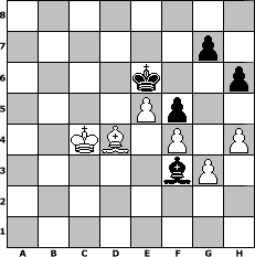 Partie-Notation im PGN-Format [Event "Spa"] [Site "www.mySchach.de"] [Date "2012.01.18"] [Round "1"] [White "lasker"] [Black "alpacino"] [ECO "D06"] [WhitemyELO "1326"] [BlackmyELO "1300"] [Result "1/2-1/2"] [TimeControl "10/2592000"] [WhiteDays "27"] [BlackDays "30"] [MySchachNr "79235"] 1. d4 d5 2. c4 Nf6 3. Nc3 dxc4 4. e4 Bg4 5. f3 Bh5 6. Bxc4 e6 7. Be3 Bb4 8. Nge2 Bxc3+ 9. bxc3 O-O 10. O-O Nc6 11. Bb3 Bg6 12. Bf2 e5 13. Kh1 a6 14. Qd2 a5 15. Rad1 b5 16. Bc2 b4 17. d5 Ne7 18. cxb4 axb4 19. Qxb4 Rxa2 20. Qb3 Ra8 21. Rc1 Rb8 22. Qd3 c6 23. dxc6 Nxc6 24. Bc5 Re8 25. Qxd8 Rexd8 26. Ba4 Nd4 27. Nxd4 exd4 28. Rfd1 Rbc8 29. Bxd4 Ra8 30. Bf2 Nh5 31. Rxd8+ Rxd8 32. Bb6 Rb8 33. Bd7 Nf6 34. Rc8+ Rxc8 35. Bxc8 Ne8 36. g3 Nd6 37. Ba6 f6 38. Bc5 Nf7 39. Bc4 Kh8 40. Bxf7 Bxf7 41. Kg2 h6 42. f4 Bc4 43. Kf3 Kg8 44. Bd4 Kf7 45. e5 Bd5+ 46. Kg4 Be6+ 47. Kf3 Bd5+ 48. Ke3 Ke6 49. h4 f5 50. Kd3 Be4+ 51. Kc4 Bd5+ 52. Kc5 Bf3 53. Kc4 1/2-1/2 Stellungs-Notation im FEN-Format 8/6p1/4k2p/4Pp2/2KB1P1P/5bP1/8/8 - - - 7 53 Geschlagene Figuren Weiss: Geschlagene Figuren Schwarz: Klicken Sie auf eine geschlagene Figur um den gewünschten Zug darzustellen!