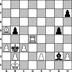 Partie-Notation im PGN-Format [Event "R"] [Site "www.mySchach.de"] [Date "2005.07.20"] [Round "1"] [White "Juliette2103"] [Black "Pocket"] [ECO "C57"] [WhitemyELO "1979"] [BlackmyELO "1310"] [Result "1-0"] [TimeControl "10/2592000"] [WhiteDays "087"] [BlackDays "109"] [MySchachNr "15262"] 1. e4 e5 2. Nf3 Nc6 3. Bc4 Nf6 4. Ng5 d5 5. exd5 Nxd5 6. Nxf7 Kxf7 7. Qf3+ Ke6 8. Nc3 Ncb4 9. Qe4 c6 10. a3 b5 11. Bb3 Na6 12. Nxd5 cxd5 13. d4 Qd6 14. dxe5 Qxe5 15. Bxd5+ Kf6 16. Bxa8 Bd6 17. Qxe5+ Bxe5 18. Bc6 Nc7 19. c3 Rd8 20. Be3 Rd6 21. Be4 a5 22. f4 Bf5 23. fxe5+ Kxe5 24. Bb7 Rd3 25. Bb6 Nd5 26. Bxd5 Kxd5 27. Rd1 Kc4 28. Rxd3 Bxd3 29. Bxa5 Kb3 30. Kd2 Bc4 31. Kc1 Bd5 32. Rd1 Bxg2 33. Rd4 g5 34. Kb1 1-0 Stellungs-Notation im FEN-Format 8/7p/8/Bp4p1/3R4/PkP5/1P2P1bP/1K6 - - - 1 34 Geschlagene Figuren Weiss: Geschlagene Figuren Schwarz: Klicken Sie auf eine geschlagene Figur um den gewünschten Zug darzustellen!