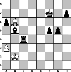 Partie-Notation im PGN-Format [Event "Bobby Fischer Ged"] [Site "www.mySchach.de"] [Date "2008.02.01"] [Round "1"] [White "Ostseeboy"] [Black "nogumo"] [ECO "A00"] [WhitemyELO "1311"] [BlackmyELO "1681"] [Result "0-1"] [TimeControl "10/864000"] [WhiteDays "49"] [BlackDays "40"] [MySchachNr "42198"] 1. b4 e5 2. Bb2 Bxb4 3. Bxe5 Nf6 4. Nf3 O-O 5. e3 d5 6. Be2 c5 7. O-O Nc6 8. Bb2 b5 9. a3 Ba5 10. Bxb5 Qd6 11. Bxc6 Qxc6 12. Nc3 Bg4 13. h3 d4 14. exd4 Bh5 15. dxc5 Rab8 16. Rb1 Bxc3 17. dxc3 Qxc5 18. Qd3 Rbd8 19. Qe3 Qc7 20. Ne5 Nd5 21. Qg3 f6 22. Ng4 Qxg3 23. fxg3 Bxg4 24. c4 Be2 25. Rfe1 Bxc4 26. Bd4 a6 27. Bc5 Rfe8 28. Kf2 Rxe1 29. Kxe1 Re8+ 30. Kd2 Re2+ 31. Kd1 Nc3+ 32. Kc1 Nxb1 33. Kxb1 Rxg2 34. Kb2 Rxg3 35. h4 Rg2 36. Kc3 Rg4 37. h5 Bb5 38. Kb3 Rg5 39. Kb4 Rxh5 40. c4 Rh4 41. Bf2 Rxc4+ 42. Kb3 Kf7 43. Bb6 g5 44. Kb2 f5 0-1 Stellungs-Notation im FEN-Format 8/5k1p/pB6/1b3pp1/2r5/P7/1K6/8 - - - 0 45 Geschlagene Figuren Weiss: Geschlagene Figuren Schwarz: Klicken Sie auf eine geschlagene Figur um den gewünschten Zug darzustellen!