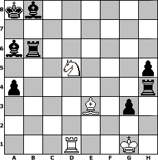 Partie-Notation im PGN-Format [Event "2. Weihnachts-Open des Club Helvetia"] [Site "www.mySchach.de"] [Date "2005.12.24"] [Round "1"] [White "Phantasos"] [Black "bjeu"] [ECO "B23"] [WhitemyELO "2005"] [BlackmyELO "2099"] [Result "0-1"] [TimeControl "10/1728000"] [WhiteDays "18"] [BlackDays "19"] [MySchachNr "21073"] 1. e4 c5 2. Nc3 Nc6 3. Nge2 Nd4 4. f4 g6 5. Nxd4 cxd4 6. Nb5 e5 7. Qf3 a6 8. Na3 exf4 9. Bc4 d5 10. Bxd5 Nf6 11. O-O g5 12. c4 dxc3 13. bxc3 Bg4 14. Qd3 Bc5+ 15. Kh1 Nxd5 16. Qxd5 Qxd5 17. exd5 O-O-O 18. d4 Ba7 19. g3 Rhe8 20. gxf4 Be2 21. Rf2 g4 22. Kg1 Bf3 23. Bd2 Bxd5 24. Nc2 Be4 25. Ne3 b5 26. f5 h5 27. Nf1 Bf3 28. h3 Bc6 29. h4 Bb8 30. Bg5 g3 31. Rc2 Rd7 32. f6 Kb7 33. Rb2 Ka7 34. Ne3 Rc8 35. Rb3 Rdd8 36. Rf1 Bb7 37. Ra1 Be4 38. a4 b4 39. Rxb4 Rxc3 40. Re1 Bd6 41. Rc4 Rd3 42. Ng2 Bf3 43. Rec1 Bd5 44. R4c2 Be4 45. Re2 Bb7 46. Re7 Ka8 47. Rxf7 Rxd4 48. Re7 Rxa4 49. Re2 Rf8 50. Rf1 Bb8 51. Be3 a5 52. Bc5 Rf7 53. Rb2 Ba6 54. Rd1 Rxf6 55. Ne3 Rc6 56. Nd5 Rxh4 57. Be3 a4 58. Rb6 Rxb6 0-1 Stellungs-Notation im FEN-Format kb6/8/br6/3N3p/p6r/4B1p1/8/3R2K1 - - - 0 59 Geschlagene Figuren Weiss: Geschlagene Figuren Schwarz: Klicken Sie auf eine geschlagene Figur um den gewünschten Zug darzustellen!