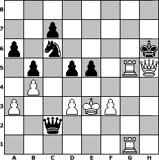 Partie-Notation im PGN-Format [Event "LISA OPEN #2"] [Site "www.mySchach.de"] [Date "2017.10.26"] [Round "1"] [White "wolni55"] [Black "muellerh"] [ECO "C41"] [WhitemyELO "1396"] [BlackmyELO "1495"] [Result "1-0"] [TimeControl "10/3456000"] [WhiteDays "40"] [BlackDays "40"] [MySchachNr "110134"] 1. e4 e5 2. Nf3 d6 3. h3 Nf6 4. Nc3 Nc6 5. Bc4 Be7 6. d3 O-O 7. O-O a6 8. a3 b5 9. Ba2 Bb7 10. b4 Re8 11. Ng5 h6 12. Bxf7+ Kh8 13. Bxe8 Qxe8 14. Nf3 Bc8 15. Be3 Be6 16. Ne2 Qd7 17. Ng3 Rf8 18. Nh4 Bxh3 19. Ng6+ Kg8 20. Nxf8 Bxf8 21. f3 h5 22. gxh3 Qxh3 23. Nh1 h4 24. Qd2 Nh5 25. Qh2 Qe6 26. Qxh4 g6 27. Kf2 Kg7 28. Rg1 Kh7 29. Ng3 Be7 30. Bg5 Bxg5 31. Qh1 Kh6 32. Nf5+ gxf5 33. Rg2 fxe4 34. Rag1 e3+ 35. Ke1 Qa2 36. Rxg5 Qb1+ 37. Ke2 Qxc2+ 38. Kxe3 d5 39. Qxh5# 1-0 Stellungs-Notation im FEN-Format 8/2p5/p1n4k/1p1pp1RQ/1P6/P2PKP2/2q5/6R1 - - - 0 39 Geschlagene Figuren Weiss: Geschlagene Figuren Schwarz: Klicken Sie auf eine geschlagene Figur um den gewünschten Zug darzustellen!