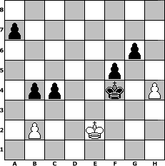 Partie-Notation im PGN-Format [Event "Aufs neue Jahr!!!"] [Site "www.mySchach.de"] [Date "2016.01.06"] [Round "1"] [White "Geisterreiter"] [Black "Andylein1989"] [ECO "C24"] [WhitemyELO "1334"] [BlackmyELO "1507"] [Result "0-1"] [TimeControl "10/2592000"] [WhiteDays "175"] [BlackDays "164"] [MySchachNr "102017"] 1. e4 e5 2. Bc4 Nf6 3. d3 Be7 4. Nf3 O-O 5. Nxe5 d5 6. exd5 Nxd5 7. Qf3 Nf6 8. Qg3 Bd6 9. Bf4 Nh5 10. Qf3 Nxf4 11. Qxf4 Bxe5 12. Qc1 Qd4 13. c3 Qh4 14. Qe3 Qf6 15. d4 Re8 16. Kf1 Bd7 17. dxe5 Rxe5 18. Qc1 Nc6 19. Nd2 Rae8 20. Nf3 Re4 21. Bd3 R4e7 22. Qc2 Bg4 23. Bxh7+ Kh8 24. Re1 Bxf3 25. Rxe7 Bxg2+ 26. Kxg2 Rxe7 27. Be4 Qg5+ 28. Kf1 Qc5 29. Qd3 g6 30. Bxc6 Qxc6 31. Rg1 Qe8 32. Rg3 Re1+ 33. Kg2 Re2 34. Qd4+ Kg8 35. Rh3 Qe4+ 36. Qxe4 Rxe4 37. Re3 Ra4 38. a3 Kf8 39. Kg3 Ra6 40. Re4 Rd6 41. Rd4 Rb6 42. Rb4 Rxb4 43. axb4 Ke7 44. Kf3 Ke6 45. h4 Kd5 46. Ke3 Kc4 47. Ke4 f6 48. f4 b5 49. Ke3 f5 50. Kd2 Kd5 51. Kd3 c5 52. c4+ bxc4+ 53. Kc3 cxb4+ 54. Kd2 Ke4 55. Ke2 Kxf4 0-1 Stellungs-Notation im FEN-Format 8/p7/6p1/5p2/1pp2k1P/8/1P2K3/8 - - - 0 56 Geschlagene Figuren Weiss: Geschlagene Figuren Schwarz: Klicken Sie auf eine geschlagene Figur um den gewünschten Zug darzustellen!