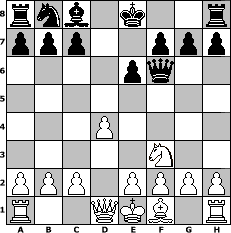 Partie-Notation im PGN-Format [Event "1. Deutsche Fernschach-Einzelspielerliga (Gr.S3G3)"] [Site "www.mySchach.de"] [Date "2008.01.01"] [Round "1"] [White "Kello@"] [Black "Backhand@"] [ECO "C11"] [WhitemyELO "1500"] [BlackmyELO "1500"] [Result "1-0"] [TimeControl "10/3456000"] [WhiteDays "04"] [BlackDays "00"] [MySchachNr "41275"] 1. e4 e6 2. d4 d5 3. Nc3 Nf6 4. Bg5 dxe4 5. Nxe4 Be7 6. Bxf6 Bxf6 7. Nxf6+ Qxf6 8. Nf3 1-0 Stellungs-Notation im FEN-Format rnb1k2r/ppp2ppp/4pq2/8/3P4/5N2/PPP1PPPP/R2QKB1R - KQkq - 1 8 Geschlagene Figuren Weiss: Geschlagene Figuren Schwarz: Klicken Sie auf eine geschlagene Figur um den gewünschten Zug darzustellen!