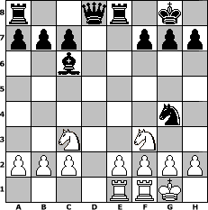 Partie-Notation im PGN-Format [Event "Spa"] [Site "www.mySchach.de"] [Date "2012.01.18"] [Round "1"] [White "Haki"] [Black "lasker"] [ECO "C41"] [WhitemyELO "1348"] [BlackmyELO "1326"] [Result "0-1"] [TimeControl "10/2592000"] [WhiteDays "30"] [BlackDays "27"] [MySchachNr "79212"] 1. e4 e5 2. Nf3 d6 3. d4 exd4 4. Qxd4 Nc6 5. Bb5 Bd7 6. Bxc6 Bxc6 7. O-O Nf6 8. Nc3 Be7 9. e5 dxe5 10. Qxe5 O-O 11. Bf4 Bd6 12. Qe3 Re8 13. Qd4 Bxf4 14. Qxf4 Nh5 15. Qg4 Nf6 16. Rae1 Nxg4 0-1 Stellungs-Notation im FEN-Format r2qr1k1/ppp2ppp/2b5/8/6n1/2N2N2/PPP1PPPP/4RRK1 - - - 0 17 Geschlagene Figuren Weiss: Geschlagene Figuren Schwarz: Klicken Sie auf eine geschlagene Figur um den gewünschten Zug darzustellen!