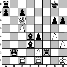 Partie-Notation im PGN-Format [Event "Mal was anderes"] [Site "www.mySchach.de"] [Date "2004.05.23"] [Round "1"] [White "Juri"] [Black "TAR"] [ECO "B07"] [WhitemyELO "1511"] [BlackmyELO "1542"] [Result "0-1"] [TimeControl "10/864000"] [WhiteDays "26"] [BlackDays "16"] [MySchachNr "4790"] 1. e4 d6 2. d4 Nf6 3. Nc3 g6 4. Bc4 Bg7 5. h3 Nxe4 6. Bxf7+ Kxf7 7. Nxe4 Rf8 8. Nf3 Kg8 9. O-O d5 10. Nc5 Nc6 11. Ng5 Qd6 12. c3 e5 13. Be3 b6 14. Nb3 e4 15. c4 h6 16. c5 bxc5 17. dxc5 Qe5 18. Nxe4 dxe4 19. Rb1 Ba6 20. Re1 Bd3 21. f4 Qf5 22. g4 Qe6 23. Bd4 Nxd4 24. Nxd4 Bxd4+ 25. Kh1 Qxa2 26. Rc1 Qxb2 27. Qa4 Rxf4 28. Qc6 Rf2 0-1 Stellungs-Notation im FEN-Format r5k1/p1p5/2Q3pp/2P5/3bp1P1/3b3P/1q2Pr2/2R1R2K - - - 2 29 Geschlagene Figuren Weiss: ![]() ![]() ![]() ![]() ![]() ![]() ![]() ![]() ![]() ![]() ![]() ![]() ![]() ![]() ![]() Geschlagene Figuren Schwarz: ![]() ![]() ![]() ![]() ![]() ![]() ![]() ![]() ![]() ![]() ![]() ![]() ![]() ![]() ![]() Klicken Sie auf eine geschlagene Figur um den gewünschten Zug darzustellen!