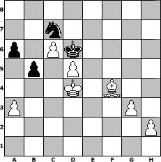 Partie-Notation im PGN-Format [Event "Unter 1501"] [Site "www.mySchach.de"] [Date "2020.08.24"] [Round "1"] [White "Kerendar"] [Black "borsti"] [ECO "D20"] [WhitemyELO "1452"] [BlackmyELO "1188"] [Result "1-0"] [TimeControl "10/2592000"] [WhiteDays "150"] [BlackDays "150"] [MySchachNr "119130"] 1. d4 d5 2. c4 dxc4 3. Qa4+ Bd7 4. Qxc4 Be6 5. Qb4 Bd5 6. Qd2 e6 7. a3 Nf6 8. Nc3 Bc4 9. Nf3 Nc6 10. e3 Bxf1 11. Rxf1 a6 12. b4 b5 13. Ng5 h6 14. Nge4 Nxe4 15. Nxe4 Bd6 16. g3 f5 17. Nc5 Bxc5 18. bxc5 Ne7 19. Bb2 O-O 20. Qc3 Nd5 21. Qd3 Qf6 22. f4 g5 23. Kd2 c6 24. Rae1 Rae8 25. Rf2 Qg6 26. Rfe2 Re7 27. e4 fxe4 28. Rxe4 Nf6 29. Rxe6 Qxd3+ 30. Kxd3 Rxe6 31. Rxe6 Ng4 32. Rxc6 Rf6 33. Rxf6 Nxf6 34. c6 Ne8 35. d5 Kf7 36. Kd4 Ke7 37. Bc1 Kd6 38. fxg5 hxg5 39. Bxg5 Nc7 40. Bf4+ 1-0 Stellungs-Notation im FEN-Format 8/2n5/p1Pk4/1p1P4/3K1B2/P5P1/7P/8 - - - 2 40 Geschlagene Figuren Weiss: Geschlagene Figuren Schwarz: Klicken Sie auf eine geschlagene Figur um den gewünschten Zug darzustellen!