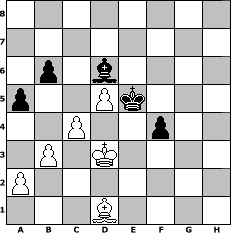 Partie-Notation im PGN-Format [Event "5er5"] [Site "www.mySchach.de"] [Date "2019.08.21"] [Round "1"] [White "beowulf"] [Black "Seneca"] [ECO "A34"] [WhitemyELO "1351"] [BlackmyELO "1463"] [Result "1/2-1/2"] [TimeControl "10/3456000"] [WhiteDays "196"] [BlackDays "172"] [MySchachNr "115653"] 1. c4 c5 2. Nc3 Nf6 3. g3 Nc6 4. Bg2 g6 5. Nf3 Bg7 6. O-O O-O 7. d4 cxd4 8. Nxd4 Nxd4 9. Qxd4 d6 10. Bg5 Ng4 11. Qd2 f6 12. Be3 Nxe3 13. Qxe3 a6 14. Rad1 Rb8 15. b3 Bd7 16. Nd5 Rf7 17. Qd3 b6 18. e4 Bc6 19. Rfe1 e5 20. f4 Bxd5 21. exd5 exf4 22. gxf4 a5 23. Re6 f5 24. Rde1 Qd7 25. Qe3 Bf8 26. Re8 Rxe8 27. Qxe8 Qxe8 28. Rxe8 Rb7 29. Kf2 Kf7 30. Re6 Re7 31. Rxd6 Re2+ 32. Kxe2 Bxd6 33. Kf3 Kf6 34. h4 h6 35. Bf1 g5 36. fxg5+ hxg5 37. hxg5+ Kxg5 38. Bd3 Kf6 39. Bc2 Ke5 40. Ke3 Bc5+ 41. Kd3 f4 42. Bd1 Bd6 1/2-1/2 Stellungs-Notation im FEN-Format 8/8/1p1b4/p2Pk3/2P2p2/1P1K4/P7/3B4 - - - 2 43 Geschlagene Figuren Weiss: Geschlagene Figuren Schwarz: Klicken Sie auf eine geschlagene Figur um den gewünschten Zug darzustellen!