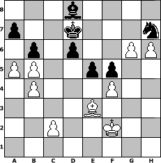 Partie-Notation im PGN-Format [Event "Schneeturnier"] [Site "www.mySchach.de"] [Date "2010.02.08"] [Round "2"] [White "bruno"] [Black "RashimIbenRohal"] [ECO "A18"] [WhitemyELO "1773"] [BlackmyELO "1512"] [Result "1-0"] [TimeControl "10/2592000"] [WhiteDays "149"] [BlackDays "128"] [MySchachNr "63115"] 1. c4 Nf6 2. Nc3 e6 3. e4 d6 4. Nf3 c5 5. d4 cxd4 6. Nxd4 Be7 7. Bd3 O-O 8. O-O Nc6 9. Nf3 b6 10. a3 Bb7 11. b4 Nd7 12. Be3 Nce5 13. Nxe5 Nxe5 14. Be2 Rc8 15. Qb3 Ba6 16. Nb5 Bxb5 17. cxb5 Qd7 18. f4 Ng6 19. Rac1 Rxc1 20. Rxc1 Rc8 21. Qd1 Rxc1 22. Qxc1 Bd8 23. Qc6 Qc7 24. g3 Kf8 25. Qxc7 Bxc7 26. Kf2 Ke7 27. a4 Nf8 28. Bf3 Nd7 29. g4 f6 30. h4 g6 31. g5 f5 32. exf5 gxf5 33. h5 Nf8 34. Bb7 e5 35. Bd5 Ne6 36. h6 Nf8 37. Bg8 Bd8 38. a5 Kd7 39. Bxh7 Nxh7 40. g6 1-0 Stellungs-Notation im FEN-Format 3b4/p2k3n/1p1p2PP/PP2pp2/1P3P2/4B3/2P2K2/8 - - - 0 40 Geschlagene Figuren Weiss: Geschlagene Figuren Schwarz: Klicken Sie auf eine geschlagene Figur um den gewünschten Zug darzustellen!