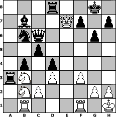 Partie-Notation im PGN-Format [Event "Adventszeit"] [Site "www.mySchach.de"] [Date "2022.11.28"] [Round "1"] [White "faustballer"] [Black "Seneca"] [ECO "B07"] [WhitemyELO "1560"] [BlackmyELO "1503"] [Result "1/2-1/2"] [TimeControl "10/1728000"] [WhiteDays "20"] [BlackDays "19"] [MySchachNr "128291"] 1. e4 d6 2. Bc4 e6 3. b3 Nf6 4. Bb2 Be7 5. f3 Nc6 6. Nc3 O-O 7. Nge2 a6 8. O-O Ne5 9. Ng3 Nxc4 10. bxc4 b6 11. Nce2 c5 12. Qe1 Bb7 13. Rd1 g6 14. d3 b5 15. cxb5 axb5 16. a3 Qb6 17. Kh1 Nd7 18. Nc3 Bf6 19. Rb1 Qc6 20. Nge2 Nb6 21. Qg3 Rfd8 22. Qe1 d5 23. exd5 exd5 24. Nd1 Bxb2 25. Nxb2 Rxa3 26. Nc1 b4 27. Nb3 d4 28. Qe7 1/2-1/2 Stellungs-Notation im FEN-Format 3r2k1/1b2Qp1p/1nq3p1/2p5/1p1p4/rN1P1P2/1NP3PP/1R3R1K - - - 1 28 Geschlagene Figuren Weiss: Geschlagene Figuren Schwarz: Klicken Sie auf eine geschlagene Figur um den gewünschten Zug darzustellen!