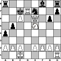 Partie-Notation im PGN-Format [Event "FREUNDESTUNIER"] [Site "www.mySchach.de"] [Date "2005.10.28"] [Round "1"] [White "MStr"] [Black "Biber"] [ECO "C42"] [WhitemyELO "1541"] [BlackmyELO "1211"] [Result "1-0"] [TimeControl "10/864000"] [WhiteDays "14"] [BlackDays "19"] [MySchachNr "18953"] 1. e4 e5 2. Nf3 Nf6 3. Nxe5 Qe7 4. d4 Nxe4 5. Qf3 d5 6. Nd2 Nxd2 7. Bxd2 Nc6 8. Qxd5 Qd6 9. Qxf7+ Kd8 10. Bg5+ Qe7 11. Bxe7+ Nxe7 12. O-O-O c6 13. Bc4 b5 14. Bb3 a5 15. d5 a4 16. dxc6+ Kc7 17. Be6 Bxe6 18. Qxe6 g6 19. Rd7+ 1-0 Stellungs-Notation im FEN-Format r4b1r/2kRn2p/2P1Q1p1/1p2N3/p7/8/PPP1PPPP/2K4R - - - 1 19 Geschlagene Figuren Weiss: Geschlagene Figuren Schwarz: Klicken Sie auf eine geschlagene Figur um den gewünschten Zug darzustellen!