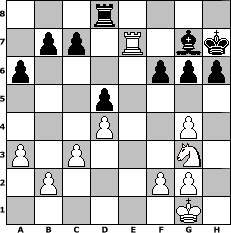 Partie-Notation im PGN-Format [Event "CAISSA.COM IS DEAD TO ME!"] [Site "www.mySchach.de"] [Date "2020.03.28"] [Round "2"] [White "UPS"] [Black "iamnothere"] [ECO "B01"] [WhitemyELO "1664"] [BlackmyELO "1447"] [Result "1-0"] [TimeControl "10/2592000"] [WhiteDays "21"] [BlackDays "30"] [MySchachNr "117730"] 1. e4 d5 2. exd5 Qxd5 3. Nc3 Qd8 4. d4 Nf6 5. Nf3 g6 6. Bc4 e6 7. a3 h6 8. O-O Bg7 9. h3 O-O 10. Be3 Nd5 11. Bxd5 exd5 12. Qd2 Kh7 13. Ne2 Nc6 14. c3 a6 15. Rae1 Re8 16. Ng3 f6 17. Nh2 Na5 18. Qc2 Nc4 19. Qc1 Nxe3 20. Rxe3 Bd7 21. Rfe1 Rxe3 22. Qxe3 Qe8 23. Qe7 Qxe7 24. Rxe7 Rd8 25. Ng4 Bxg4 26. hxg4 1-0 Stellungs-Notation im FEN-Format 3r4/1pp1R1bk/p4ppp/3p4/3P2P1/P1P3N1/1P3PP1/6K1 - - - 0 26 Geschlagene Figuren Weiss: Geschlagene Figuren Schwarz: Klicken Sie auf eine geschlagene Figur um den gewünschten Zug darzustellen!