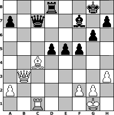 Partie-Notation im PGN-Format [Event "Wrixum - Open die XII"] [Site "www.mySchach.de"] [Date "2014.10.09"] [Round "1"] [White "Joschi"] [Black "haggard"] [ECO "B34"] [WhitemyELO "1584"] [BlackmyELO "1977"] [Result "0-1"] [TimeControl "10/2592000"] [WhiteDays "90"] [BlackDays "90"] [MySchachNr "96305"] 1. e4 c5 2. Nf3 Nc6 3. d4 cxd4 4. Nxd4 g6 5. Be3 Bg7 6. c3 Nf6 7. Bd3 O-O 8. Nd2 d5 9. h3 dxe4 10. Nxe4 Nd5 11. Nxc6 bxc6 12. Bc5 Rb8 13. Qc2 Qa5 14. b4 Qc7 15. O-O f5 16. Ng3 Bxc3 17. Rab1 Bxb4 18. Bxb4 Rxb4 19. Rxb4 Nxb4 20. Qb3+ Nd5 21. Bc4 Be6 22. Rc1 Rd8 23. Ne2 Bf7 24. Nc3 e5 25. Nxd5 cxd5 0-1 Stellungs-Notation im FEN-Format 3r2k1/p1q2b1p/6p1/3ppp2/2B5/1Q5P/P4PP1/2R3K1 - - - 0 26 Geschlagene Figuren Weiss: Geschlagene Figuren Schwarz: Klicken Sie auf eine geschlagene Figur um den gewünschten Zug darzustellen!