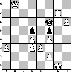 Partie-Notation im PGN-Format [Event "Prätorianer"] [Site "www.mySchach.de"] [Date "2023.01.04"] [Round "1"] [White "borsti"] [Black "Achimkogge"] [ECO "A03"] [WhitemyELO "1331"] [BlackmyELO "1307"] [Result "1-0"] [TimeControl "10/1728000"] [WhiteDays "20"] [BlackDays "20"] [MySchachNr "128896"] 1. f4 d5 2. d4 Nc6 3. e3 Nf6 4. Nc3 Bg4 5. Be2 Bf5 6. h3 Nb4 7. Bd3 Bxd3 8. cxd3 a6 9. Qa4+ Nc6 10. Nf3 e6 11. Ne5 Nd7 12. Nxc6 bxc6 13. Qxc6 Bd6 14. a3 O-O 15. O-O Ra7 16. Bd2 f5 17. Qa4 Nb6 18. Qd1 Qh4 19. Be1 Qd8 20. Ne2 a5 21. Qb3 a4 22. Qb5 h5 23. h4 Na8 24. Bb4 Nb6 25. g3 Bxb4 26. Qxb4 Re8 27. Rfc1 Re7 28. Nc3 Qd7 29. Rc2 Kh7 30. Rac1 Qe8 31. Nb5 Rb7 32. Nxc7 Rbxc7 33. Rxc7 Rxc7 34. Rxc7 Nd7 35. Qxa4 Qe7 36. Qxd7 Qf6 37. Qf7 Qxf7 38. Rxf7 Kg6 39. Rc7 Kf6 40. b4 g5 41. hxg5+ Kg6 42. Re7 h4 43. Rxe6+ Kh5 44. g6 Kh6 45. gxh4 Kg7 46. h5 Kh6 47. g7+ Kxg7 48. Rg6+ Kf7 49. b5 Ke7 50. b6 Kd7 51. h6 Ke7 52. b7 Kf7 53. Rg7+ Kf6 54. b8=Q 1-0 Stellungs-Notation im FEN-Format 1Q6/6R1/5k1P/3p1p2/3P1P2/P2PP3/5P2/6K1 - - - 0 54 Geschlagene Figuren Weiss: Geschlagene Figuren Schwarz: Klicken Sie auf eine geschlagene Figur um den gewünschten Zug darzustellen!