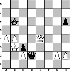 Partie-Notation im PGN-Format [Event "MLN Winterturnier 2013"] [Site "www.mySchach.de"] [Date "2013.12.01"] [Round "1"] [White "martinus"] [Black "espero"] [ECO "C02"] [WhitemyELO "1769"] [BlackmyELO "1682"] [Result "1-0"] [TimeControl "10/2592000"] [WhiteDays "29"] [BlackDays "30"] [MySchachNr "91413"] 1. e4 e6 2. d4 d5 3. e5 c5 4. Be3 cxd4 5. Bxd4 Nc6 6. Bb5 Bd7 7. Nf3 Nxe5 8. Nxe5 Bxb5 9. Qh5 Qc7 10. Nc3 Ba6 11. O-O-O Nf6 12. Qg5 h6 13. Qg3 b6 14. Rhe1 O-O-O 15. Kb1 Rg8 16. Qe3 Bc5 17. Bxc5 bxc5 18. Na4 Ne4 19. f3 Bb5 20. fxe4 Bxa4 21. exd5 exd5 22. Qa3 Bb5 23. Nxf7 Rd7 24. Ne5 Rd6 25. Qb3 Bc6 26. Nxc6 Qxc6 27. Re7 c4 28. Qe3 Qb6 29. Qe5 g6 30. Rxa7 Rgd8 31. Ra4 Qb5 32. Ra8+ Kb7 33. Rxd8 Rxd8 34. Qg7+ Rd7 35. Qxg6 c3 36. b3 d4 37. a4 Qe2 38. Rxd4 Qe1+ 39. Ka2 Rxd4 40. Qg7+ Kc6 41. Qxd4 Qd2 42. Qe4+ Kc5 43. b4+ Kb6 44. Kb3 1-0 Stellungs-Notation im FEN-Format 8/8/1k5p/8/PP2Q3/1Kp5/2Pq2PP/8 - - - 2 44 Geschlagene Figuren Weiss: Geschlagene Figuren Schwarz: Klicken Sie auf eine geschlagene Figur um den gewünschten Zug darzustellen!
