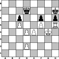 Partie-Notation im PGN-Format [Event "Zur Sommersonnenwende"] [Site "www.mySchach.de"] [Date "2016.06.23"] [Round "2"] [White "peter58"] [Black "Seneca"] [ECO "D10"] [WhitemyELO "1539"] [BlackmyELO "1486"] [Result "0-1"] [TimeControl "10/2592000"] [WhiteDays "136"] [BlackDays "111"] [MySchachNr "104015"] 1. d4 d5 2. c4 c6 3. e3 Nf6 4. c5 g6 5. h3 Bg7 6. Nc3 b6 7. b4 b5 8. Nf3 O-O 9. Bd3 Nbd7 10. O-O a5 11. Ba3 axb4 12. Bxb4 Re8 13. a4 bxa4 14. Rxa4 Rxa4 15. Qxa4 Bb7 16. Ra1 e6 17. Ba5 Qa8 18. Qd1 e5 19. Bc7 Qc8 20. Bxe5 Nxe5 21. Nxe5 Qc7 22. g4 h6 23. Kg2 Nh7 24. Nf3 Nf6 25. Nh4 Kh7 26. Qe2 Nd7 27. Qf3 Nf8 28. Ne2 Qe7 29. Kg3 Bf6 30. Ng2 Ne6 31. h4 Kg7 32. Nef4 Nxf4 33. Qxf4 Bc8 34. Rh1 g5 35. hxg5 Bxg5 36. Qf3 Qe6 37. Bf5 Qf6 38. Nh4 Bxh4+ 39. Rxh4 Bxf5 40. gxf5 Kh7 41. Qf4 Re4 42. Rh5 Rxf4 43. Kxf4 Qe7 44. f3 f6 45. e4 Qc7+ 46. Kg4 dxe4 47. fxe4 Qd7 0-1 Stellungs-Notation im FEN-Format 8/3q3k/2p2p1p/2P2P1R/3PP1K1/8/3P4/8 - - - 1 48 Geschlagene Figuren Weiss: Geschlagene Figuren Schwarz: Klicken Sie auf eine geschlagene Figur um den gewünschten Zug darzustellen!
