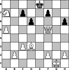 Partie eroeffnet am 28.10.2005, 00:09 Uhr und beendet am 07.11.2005, 22:05 Uhr Spieler weiss: Whiskey40 Spieler schwarz: icke Whiskey40 hat die Partie gewonnen! | |