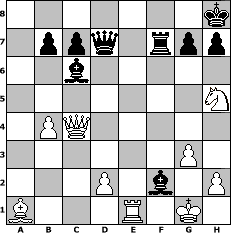 Partie-Notation im PGN-Format [Event "O, Du fröhlische"] [Site "www.mySchach.de"] [Date "2018.11.26"] [Round "2"] [White "hape50"] [Black "Gauss1233"] [ECO "A45"] [WhitemyELO "1287"] [BlackmyELO "1414"] [Result "0-1"] [TimeControl "10/2592000"] [WhiteDays "117"] [BlackDays "106"] [MySchachNr "113544"] 1. d4 Nf6 2. g3 e6 3. Bg2 d5 4. a3 Nc6 5. e3 Be7 6. Ne2 O-O 7. Nbc3 a6 8. Nf4 Bd6 9. e4 dxe4 10. Nxe4 Nxe4 11. Bxe4 Bd7 12. c4 e5 13. dxe5 Be7 14. e6 fxe6 15. b4 e5 16. Ng2 a5 17. Qh5 Rf6 18. O-O Qc8 19. Bxc6 Bxc6 20. Qxe5 Bd6 21. Qe3 axb4 22. c5 Bf8 23. Qb3+ Kh8 24. Bb2 Bxc5 25. axb4 Rf3 26. Qc4 Bb6 27. Nf4 Rxa1 28. Bxa1 Qd7 29. Nh5 Rf7 30. Re1 Bxf2+ 0-1 Stellungs-Notation im FEN-Format 7k/1ppq1rpp/2b5/7N/1PQ5/6P1/3P1b1P/B3R1K1 - - - 0 31 Geschlagene Figuren Weiss: Geschlagene Figuren Schwarz: Klicken Sie auf eine geschlagene Figur um den gewünschten Zug darzustellen!