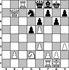 Partie-Notation im PGN-Format [Event "Mal wieder spielen 2"] [Site "www.mySchach.de"] [Date "2013.05.12"] [Round "1"] [White "Tomino"] [Black "Joschi"] [ECO "A48"] [WhitemyELO "1690"] [BlackmyELO "1599"] [Result "1-0"] [TimeControl "10/1728000"] [WhiteDays "33"] [BlackDays "60"] [MySchachNr "88245"] 1. d4 Nf6 2. Nf3 g6 3. Bf4 Bg7 4. e3 O-O 5. h3 d5 6. Be2 Nbd7 7. O-O c5 8. c3 cxd4 9. cxd4 a6 10. Nbd2 b5 11. Rc1 Bb7 12. Qb3 Rc8 13. a4 Bc6 14. axb5 Bxb5 15. Bxb5 axb5 16. Qxb5 e6 17. Qb7 Nh5 18. Bc7 Qe8 19. Bd6 Nhf6 20. Ne5 Nxe5 21. dxe5 Nd7 22. Bxf8 Bxf8 23. Rxc8 1-0 Stellungs-Notation im FEN-Format 2R1qbk1/1Q1n1p1p/4p1p1/3pP3/8/4P2P/1P1N1PP1/5RK1 - - - 0 23 Geschlagene Figuren Weiss: Geschlagene Figuren Schwarz: Klicken Sie auf eine geschlagene Figur um den gewünschten Zug darzustellen!