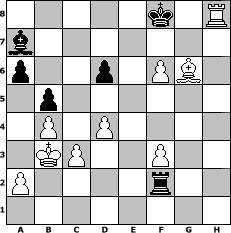 Partie-Notation im PGN-Format [Event "Energiekrise"] [Site "www.mySchach.de"] [Date "2022.10.29"] [Round "1"] [White "Achimkogge"] [Black "Hobbykegler"] [ECO "C46"] [WhitemyELO "1303"] [BlackmyELO "1144"] [Result "1-0"] [TimeControl "10/1728000"] [WhiteDays "20"] [BlackDays "15"] [MySchachNr "127794"] 1. e4 e5 2. Nf3 Nc6 3. Nc3 a6 4. Nd5 Nd4 5. Nxe5 Nh6 6. c3 Nc6 7. Nc4 Bc5 8. d4 Ba7 9. Bf4 d6 10. b4 b5 11. Nce3 O-O 12. Qh5 f5 13. Bg5 Qd7 14. Bxh6 gxh6 15. exf5 Qg7 16. Bd3 Bd7 17. O-O-O Be8 18. Qf3 Rb8 19. Nxc7 Qxc7 20. Nd5 Qg7 21. f6 Qg5+ 22. Kb2 Bf7 23. Ne7+ Nxe7 24. h4 Bh5 25. hxg5 Bxf3 26. gxf3 Nd5 27. Rxh6 Rbe8 28. Bxh7+ Kf7 29. Bg6+ Kg8 30. Rdh1 Re2+ 31. Kb3 Nxf6 32. Rh8+ Kg7 33. Rxf8 Kxf8 34. gxf6 Rxf2 35. Rh8# 1-0 Stellungs-Notation im FEN-Format 5k1R/b7/p2p1PB1/1p6/1P1P4/1KP2P2/P4r2/8 - - - 1 35 Geschlagene Figuren Weiss: Geschlagene Figuren Schwarz: Klicken Sie auf eine geschlagene Figur um den gewünschten Zug darzustellen!