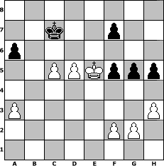Partie-Notation im PGN-Format [Event "5erD"] [Site "www.mySchach.de"] [Date "2015.09.14"] [Round "1"] [White "Vahl1"] [Black "alibengali"] [ECO "A45"] [WhitemyELO "1728"] [BlackmyELO "1669"] [Result "1-0"] [TimeControl "10/3456000"] [WhiteDays "38"] [BlackDays "40"] [MySchachNr "100443"] 1. d4 Nf6 2. Nc3 b6 3. Bg5 d5 4. Bxf6 exf6 5. a3 Bb7 6. Nf3 Nd7 7. e3 c5 8. dxc5 Nxc5 9. Bb5+ Nd7 10. Nxd5 Be7 11. Nf4 a6 12. Bxd7+ Qxd7 13. Qxd7+ Kxd7 14. O-O-O+ Kc7 15. Nd5+ Bxd5 16. Rxd5 g5 17. Rd1 Rhd8 18. b4 Rxd5 19. Rxd5 Kc6 20. Rd4 Rd8 21. c3 Rxd4 22. Nxd4+ Kd5 23. Kd2 Bd6 24. h3 Be5 25. Kd3 Bxd4 26. c4+ Kc6 27. exd4 f5 28. d5+ Kd6 29. Kd4 h5 30. c5+ Kc7 31. Ke5 bxc5 32. bxc5 1-0 Stellungs-Notation im FEN-Format 8/2k2p2/p7/2PPKppp/8/P6P/5PP1/8 - - - 0 32 Geschlagene Figuren Weiss: Geschlagene Figuren Schwarz: Klicken Sie auf eine geschlagene Figur um den gewünschten Zug darzustellen!