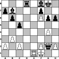 Partie-Notation im PGN-Format [Event "YOUR LAST BREATH"] [Site "www.mySchach.de"] [Date "2019.11.17"] [Round "1"] [White "augustus"] [Black "Joschi"] [ECO "B10"] [WhitemyELO "1155"] [BlackmyELO "1531"] [Result "0-1"] [TimeControl "10/3456000"] [WhiteDays "40"] [BlackDays "40"] [MySchachNr "116332"] 1. e4 c6 2. Bc4 d5 3. Bd3 dxe4 4. Bxe4 Nf6 5. d3 Nxe4 6. dxe4 Qb6 7. Qf3 Nd7 8. Ne2 e6 9. O-O Be7 10. b3 O-O 11. Nf4 Nf6 12. e5 Nd5 13. Nh5 Rd8 14. Qg3 Bf8 15. Bh6 g6 16. Nf6+ Nxf6 17. exf6 Bxh6 18. Qh4 Bf8 19. Nd2 Rxd2 20. Rad1 Rxd1 21. Rxd1 Qc7 22. g3 b6 23. Rd4 Bb7 24. g4 h6 25. Qg3 e5 26. Re4 Rd8 27. Rxe5 c5 28. Re1 Qxg3+ 29. Kf1 Qg2+ 0-1 Stellungs-Notation im FEN-Format 3r1bk1/pb3p2/1p3Ppp/2p5/6P1/1P6/P1P2PqP/4RK2 - - - 2 30 Geschlagene Figuren Weiss: Geschlagene Figuren Schwarz: Klicken Sie auf eine geschlagene Figur um den gewünschten Zug darzustellen!