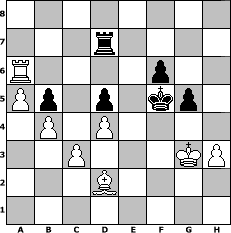 Partie-Notation im PGN-Format [Event "Adventszeit"] [Site "www.mySchach.de"] [Date "2022.11.28"] [Round "1"] [White "faustballer"] [Black "Master1"] [ECO "C44"] [WhitemyELO "1560"] [BlackmyELO "1305"] [Result "1-0"] [TimeControl "10/1728000"] [WhiteDays "20"] [BlackDays "18"] [MySchachNr "128269"] 1. e4 e5 2. Nf3 Nc6 3. a3 Nf6 4. d3 Bc5 5. h3 O-O 6. Nc3 d6 7. Na4 b6 8. b4 Bd4 9. c3 Bxf2+ 10. Kxf2 b5 11. Nb2 Re8 12. Bg5 h6 13. Bh4 a6 14. a4 Bb7 15. a5 Bc8 16. Be2 Be6 17. g4 Rb8 18. g5 hxg5 19. Bxg5 Qe7 20. Qg1 Rbd8 21. Bh6 Nh5 22. Bg5 f6 23. Be3 Rd7 24. Nxe5 Nxe5 25. Bxh5 Red8 26. d4 Nc4 27. Nxc4 Bxc4 28. Bg6 Bf7 29. Bf5 Be6 30. Bxe6+ Qxe6 31. Qg2 Qc4 32. Rac1 Qa2+ 33. Kg1 Qxg2+ 34. Kxg2 c6 35. Kh2 d5 36. exd5 cxd5 37. Rcf1 Rc8 38. Bd2 Re8 39. Re1 Rde7 40. Rxe7 Rxe7 41. Re1 Rc7 42. Kg3 g5 43. Kf2 Rh7 44. Kg3 Kf7 45. Rf1 Kg6 46. Re1 Rd7 47. Re6 Kf5 48. Rxa6 1-0 Stellungs-Notation im FEN-Format 8/3r4/R4p2/Pp1p1kp1/1P1P4/2P3KP/3B4/8 - - - 0 48 Geschlagene Figuren Weiss: Geschlagene Figuren Schwarz: Klicken Sie auf eine geschlagene Figur um den gewünschten Zug darzustellen!