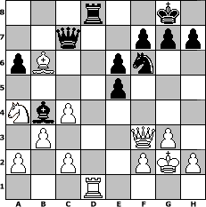 Partie-Notation im PGN-Format [Event "zum Dritten"] [Site "www.mySchach.de"] [Date "2012.12.05"] [Round "1"] [White "Wernburger"] [Black "Joschi"] [ECO "A16"] [WhitemyELO "1635"] [BlackmyELO "1586"] [Result "1-0"] [TimeControl "10/864000"] [WhiteDays "10"] [BlackDays "10"] [MySchachNr "85322"] 1. c4 Nf6 2. Nc3 c5 3. g3 Nc6 4. Bg2 e6 5. e4 d6 6. Nge2 Be7 7. O-O O-O 8. d4 cxd4 9. Nxd4 a6 10. Nxc6 bxc6 11. e5 dxe5 12. Bxc6 Rb8 13. b3 Bb7 14. Bxb7 Rxb7 15. Qf3 Rd7 16. Be3 Rd3 17. Rfd1 Rxd1+ 18. Rxd1 Qc7 19. Kg2 Bb4 20. Na4 Rd8 21. Bb6 1-0 Stellungs-Notation im FEN-Format 3r2k1/2q2ppp/pB2pn2/4p3/NbP5/1P3QP1/P1P2PKP/3R4 - - - 6 21 Geschlagene Figuren Weiss: ![]() ![]() ![]() ![]() ![]() ![]() ![]() ![]() ![]() ![]() ![]() ![]() ![]() ![]() ![]() Geschlagene Figuren Schwarz: ![]() ![]() ![]() ![]() ![]() ![]() ![]() ![]() ![]() ![]() ![]() ![]() ![]() ![]() ![]() Klicken Sie auf eine geschlagene Figur um den gewünschten Zug darzustellen!