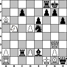 Partie eroeffnet am 22.01.2005, 00:00 Uhr und beendet am 17.02.2005, 19:12 Uhr Spieler weiss: Knight Spieler schwarz: Falcor Falcor hat die Partie gewonnen!  | |