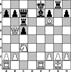 Partie-Notation im PGN-Format [Event "Frauentagsturnier"] [Site "www.mySchach.de"] [Date "2010.03.08"] [Round "1"] [White "pferdemuggelchen"] [Black "Joschi"] [ECO "B12"] [WhitemyELO "1554"] [BlackmyELO "1552"] [Result "1-0"] [TimeControl "10/2592000"] [WhiteDays "89"] [BlackDays "88"] [MySchachNr "63813"] 1. e4 c6 2. d4 d5 3. e5 Bf5 4. Nf3 e6 5. Be2 Nd7 6. O-O Rc8 7. Be3 c5 8. c4 dxc4 9. d5 exd5 10. Qxd5 Qc7 11. Bxc4 Be6 12. Qd3 Bxc4 13. Qxc4 Nxe5 14. Nxe5 Qxe5 15. Qb5+ Rc6 16. Re1 Be7 17. Nc3 Nf6 18. Bh6 Qc7 19. Bxg7 Rg8 20. Bxf6 1-0 Stellungs-Notation im FEN-Format 4k1r1/ppq1bp1p/2r2B2/1Qp5/8/2N5/PP3PPP/R3R1K1 - - - 0 20 Geschlagene Figuren Weiss: Geschlagene Figuren Schwarz: Klicken Sie auf eine geschlagene Figur um den gewünschten Zug darzustellen!