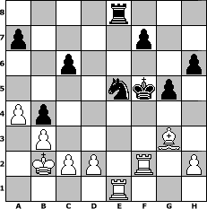 Partie eroeffnet am 12.05.2015, 00:00 Uhr und beendet am 27.07.2015, 11:16 Uhr Spieler weiss: Gordholm Spieler schwarz: Schefsche Gordholm hat die Partie gewonnen! | |