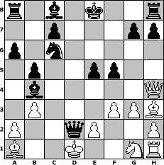 Partie-Notation im PGN-Format [Event "Die Wikinger XVII"] [Site "www.mySchach.de"] [Date "2021.04.02"] [Round "1"] [White "Hobbykegler"] [Black "nyffhans"] [ECO "A20"] [WhitemyELO "1026"] [BlackmyELO "2086"] [Result "0-1"] [TimeControl "10/2592000"] [WhiteDays "26"] [BlackDays "30"] [MySchachNr "121738"] 1. c4 e5 2. b3 Nc6 3. Bb2 Nf6 4. Qc2 d5 5. cxd5 Nxd5 6. Nc3 Ndb4 7. Qe4 f5 8. Qc4 Nc2+ 9. Kd1 Nxa1 10. Bxa1 a6 11. Nd5 Qd7 12. g3 b5 13. Qh4 Qxd5 14. f3 Bb4 15. Bh3 Qxd2# 0-1 Stellungs-Notation im FEN-Format r1b1k2r/2p3pp/p1n5/1p2pp2/1b5Q/1P3PPB/P2qP2P/B2K2NR - kq - 0 16 Geschlagene Figuren Weiss: Geschlagene Figuren Schwarz: Klicken Sie auf eine geschlagene Figur um den gewünschten Zug darzustellen!