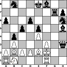 Partie-Notation im PGN-Format [Event "Energiekrise"] [Site "www.mySchach.de"] [Date "2022.10.29"] [Round "1"] [White "Haneken"] [Black "Andreas1954"] [ECO "C41"] [WhitemyELO "1143"] [BlackmyELO "1333"] [Result "0-1"] [TimeControl "10/1728000"] [WhiteDays "20"] [BlackDays "20"] [MySchachNr "127770"] 1. e4 e5 2. Nf3 d6 3. Bd3 f6 4. O-O a6 5. b3 g5 6. Bb2 c5 7. h4 g4 8. Nh2 b5 9. Nxg4 Nh6 10. Bc3 Bxg4 11. f3 Bh5 12. g4 Bf7 13. h5 b4 14. Bb2 Ra7 15. Qe2 Rc7 16. Qe3 Qc8 17. g5 fxg5 18. Qxg5 Rg8 19. Qg2 Rxg2+ 20. Kxg2 Bxh5 21. Be2 Rg7+ 22. Kf2 Qh3 0-1 Stellungs-Notation im FEN-Format 1n2kb2/6rp/p2p3n/2p1p2b/1p2P3/1P3P1q/PBPPBK2/RN3R2 - - - 4 23 Geschlagene Figuren Weiss: Geschlagene Figuren Schwarz: Klicken Sie auf eine geschlagene Figur um den gewünschten Zug darzustellen!
