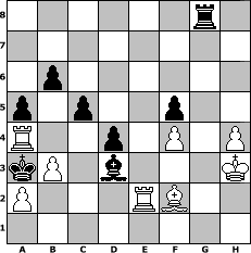 Partie-Notation im PGN-Format [Event "Ja, is denn heut scho Weihnachten?"] [Site "www.mySchach.de"] [Date "2014.12.06"] [Round "1"] [White "Ziegert"] [Black "borsti"] [ECO "C41"] [WhitemyELO "1226"] [BlackmyELO "1235"] [Result "1-0"] [TimeControl "10/2592000"] [WhiteDays "035"] [BlackDays "150"] [MySchachNr "97057"] 1. e4 e5 2. Nf3 d6 3. Bc4 h6 4. O-O Bg4 5. d3 a5 6. Be3 Qf6 7. Nbd2 Nd7 8. Qe1 b6 9. h3 Bh5 10. Bd5 O-O-O 11. d4 Bg6 12. dxe5 Nxe5 13. Qe2 Ne7 14. Qa6+ Kd7 15. Nxe5+ Qxe5 16. Qc4 Nxd5 17. exd5 Be7 18. Bd4 Qf5 19. Bxg7 Rhg8 20. Bxh6 Qxc2 21. Qxc2 Bxc2 22. Rac1 Bd3 23. Rfe1 Bg5 24. Bxg5 Rde8 25. Be3 f5 26. Nf3 Be4 27. Ng5 Bxd5 28. b3 c5 29. Nh7 Rxg2+ 30. Kf1 Reg8 31. Nf6+ Kc6 32. Nxg8 Rxg8 33. h4 Bg2+ 34. Ke2 Re8 35. f4 Rh8 36. Kf2 Be4 37. Kg3 Kb5 38. Rc4 d5 39. Rcc1 Rg8+ 40. Kh3 d4 41. Bf2 Kb4 42. Rc4+ Ka3 43. Re2 Bd3 44. Ra4# 1-0 Stellungs-Notation im FEN-Format 6r1/8/1p6/p1p2p2/R2p1P1P/kP1b3K/P3RB2/8 - - - 7 44 Geschlagene Figuren Weiss: ![]() ![]() ![]() ![]() ![]() ![]() ![]() ![]() ![]() ![]() ![]() ![]() ![]() ![]() ![]() Geschlagene Figuren Schwarz: ![]() ![]() ![]() ![]() ![]() ![]() ![]() ![]() ![]() ![]() ![]() ![]() ![]() ![]() ![]() Klicken Sie auf eine geschlagene Figur um den gewünschten Zug darzustellen!