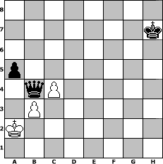 Partie-Notation im PGN-Format [Event "Freischütz"] [Site "www.mySchach.de"] [Date "2021.03.14"] [Round "1"] [White "wolni55"] [Black "lotchi"] [ECO "C55"] [WhitemyELO "1394"] [BlackmyELO "1349"] [Result "0-1"] [TimeControl "10/864000"] [WhiteDays "52"] [BlackDays "51"] [MySchachNr "121464"] 1. e4 e5 2. Nf3 Nc6 3. Bc4 Nf6 4. d3 h6 5. Nc3 Bc5 6. Bd5 d6 7. Bc4 a6 8. a4 Be6 9. Bxe6 fxe6 10. O-O Qd7 11. Qe2 O-O 12. Be3 Nd4 13. Qd1 g5 14. a5 Nxf3+ 15. gxf3 Bxe3 16. fxe3 c5 17. Ne2 b5 18. axb6 Rfb8 19. b3 Rxb6 20. Qd2 Ne8 21. Kf2 Ng7 22. Rg1 Rf8 23. Rg4 Qf7 24. Rg3 Qh5 25. h3 Ne8 26. Ng1 Nc7 27. Qa5 Rfb8 28. Qa4 Qe8 29. Qa3 Qf7 30. Qc1 Rf8 31. Ke2 d5 32. exd5 exd5 33. h4 Ne6 34. Qb2 d4 35. e4 Kh7 36. hxg5 Nxg5 37. Ra5 Rf6 38. Rxc5 Nxf3 39. Nxf3 Rxf3 40. Rxe5 Rxg3 41. Rf5 Qg7 42. Rxf8 Qxf8 43. Qxd4 Qf3+ 44. Kd2 Rg2+ 45. Kc3 Qg3 46. Qa7+ Qg7+ 47. Qxg7+ Rxg7 48. e5 h5 49. d4 h4 50. d5 h3 51. e6 h2 52. d6 h1=Q 53. Kb2 Qd5 54. e7 Rxe7 55. dxe7 Qe5+ 56. Ka2 Qxe7 57. c4 Qb7 58. Ka3 a5 59. Ka2 Qb4 0-1 Stellungs-Notation im FEN-Format 8/7k/8/p7/1qP5/1P6/K7/8 - - - 2 60 Geschlagene Figuren Weiss: ![]() ![]() ![]() ![]() ![]() ![]() ![]() ![]() ![]() ![]() ![]() ![]() ![]() ![]() ![]() Geschlagene Figuren Schwarz: ![]() ![]() ![]() ![]() ![]() ![]() ![]() ![]() ![]() ![]() ![]() ![]() ![]() ![]() ![]() Klicken Sie auf eine geschlagene Figur um den gewünschten Zug darzustellen!
